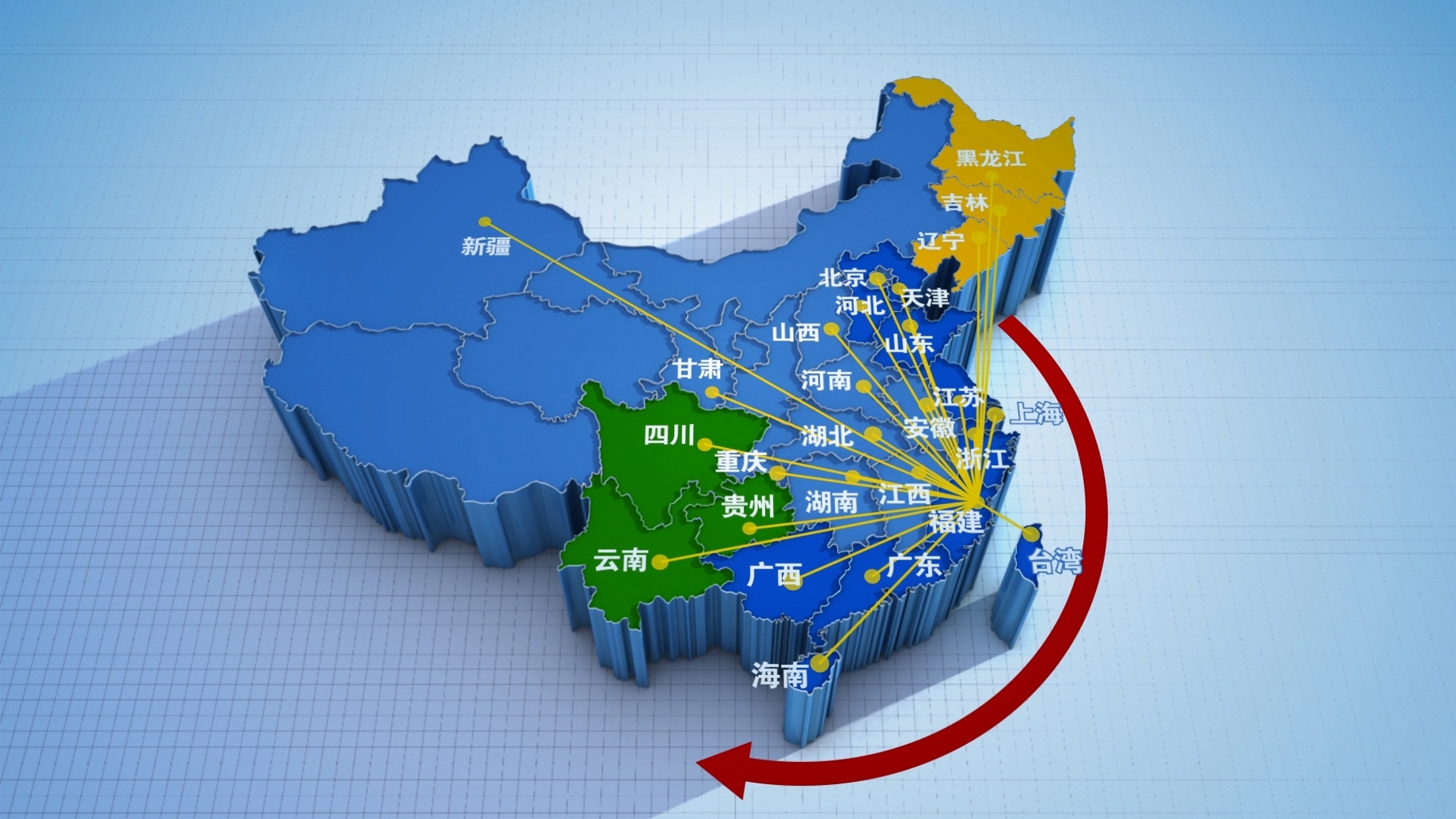 (注:此3D模型仅用于展示销售网络,不包含中国海域,并非中国地图。)