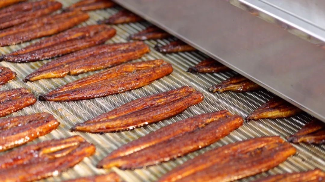 在天马科技加工厂房,烤鳗生产线高效运转?!拔颐墙┯阒瞥砂咨?、蒲烧、串烧、烤肝串等各类产品,年产1500吨,产销量均全国领先?!碧炻硎称饭鞠鄹涸鹑怂担昀?,公司鳗鱼食品类新品强势崛起,产线开满、产销两旺,去年一年线上销量增速超300%?!案V菔强诀┑摹澜绻こА?,我们还打算在福州打造观光式食品超级工厂,新建两条烤鳗生产线,预计产能6000吨?!?span>